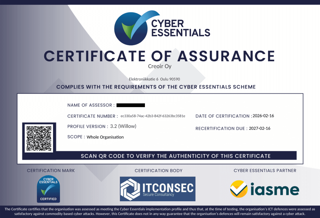 Creoir Obtains Cyber Essentials Certification
